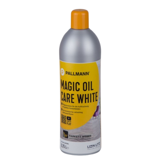 PALLMANN MAGIC OIL CARE WHITE bruges til at pleje og genopfriske oliebehandlede trægulve.